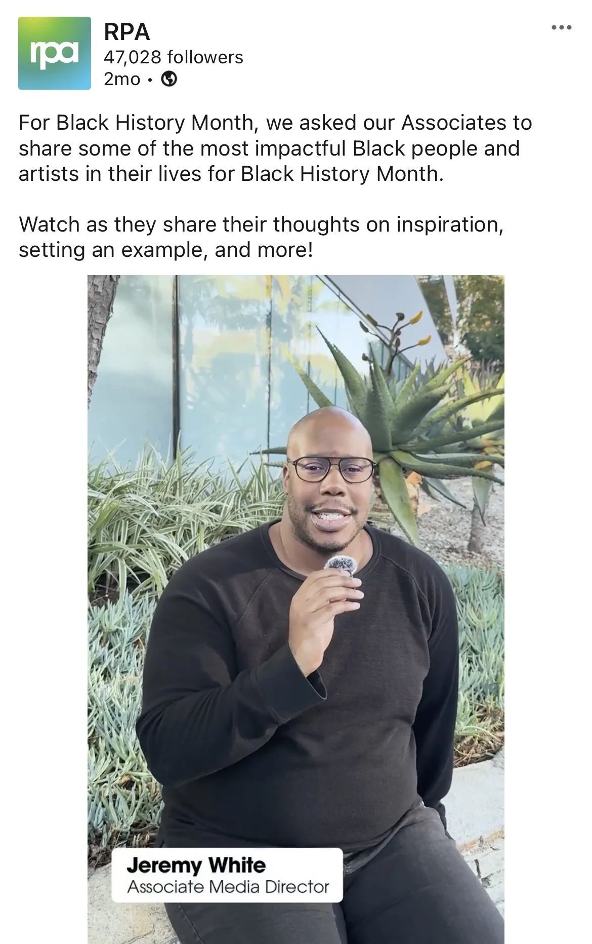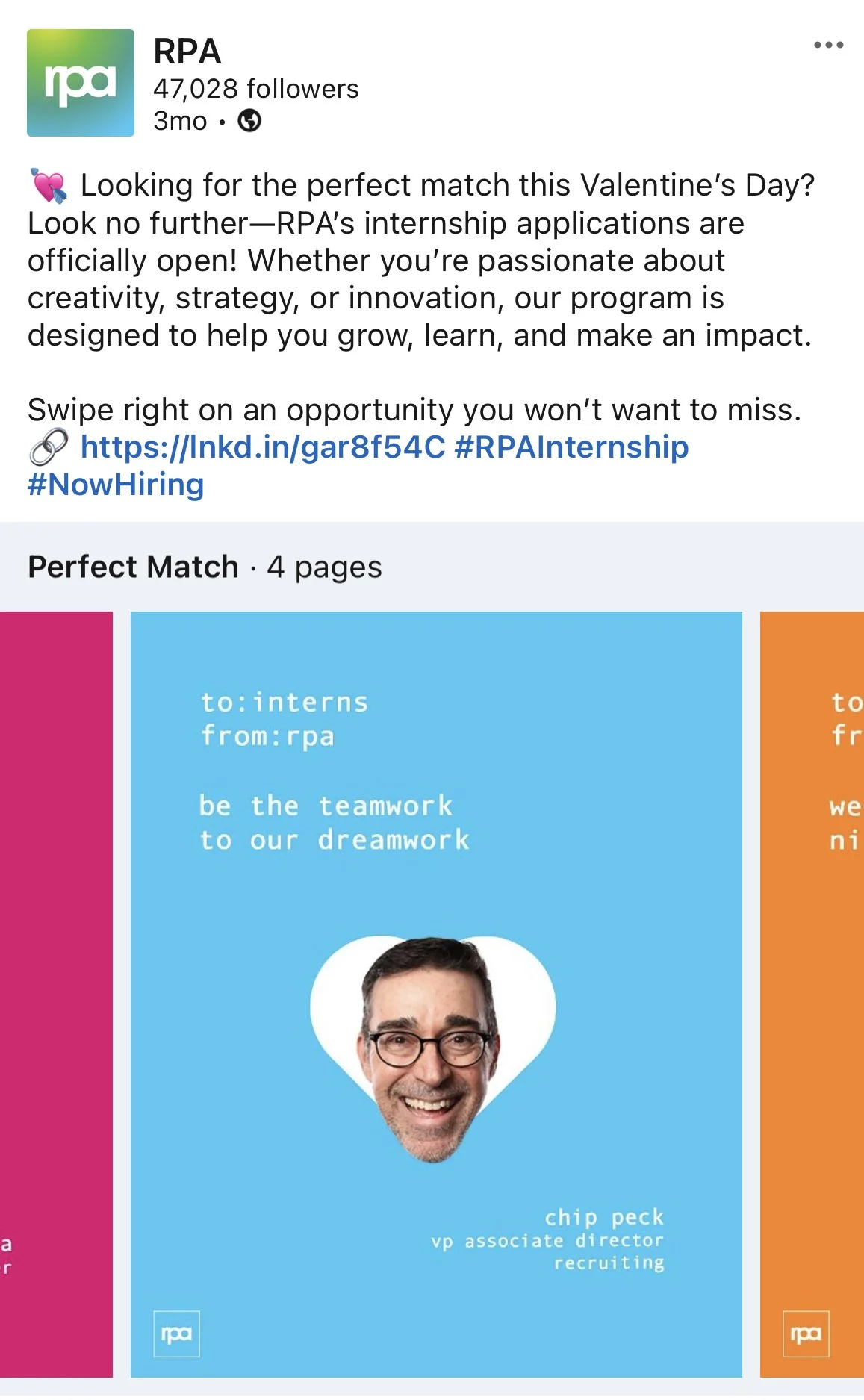 At RPA, I worked with a partner to concept and execute social media content that showcased the agency’s culture, values, and creative work. From celebrating cultural moments to giving behind-the-scenes looks at major campaigns, it was a chance to help reflect the agency’s personality and creativity. The work was posted on the agency’s LinkedIn and Instagram pages.